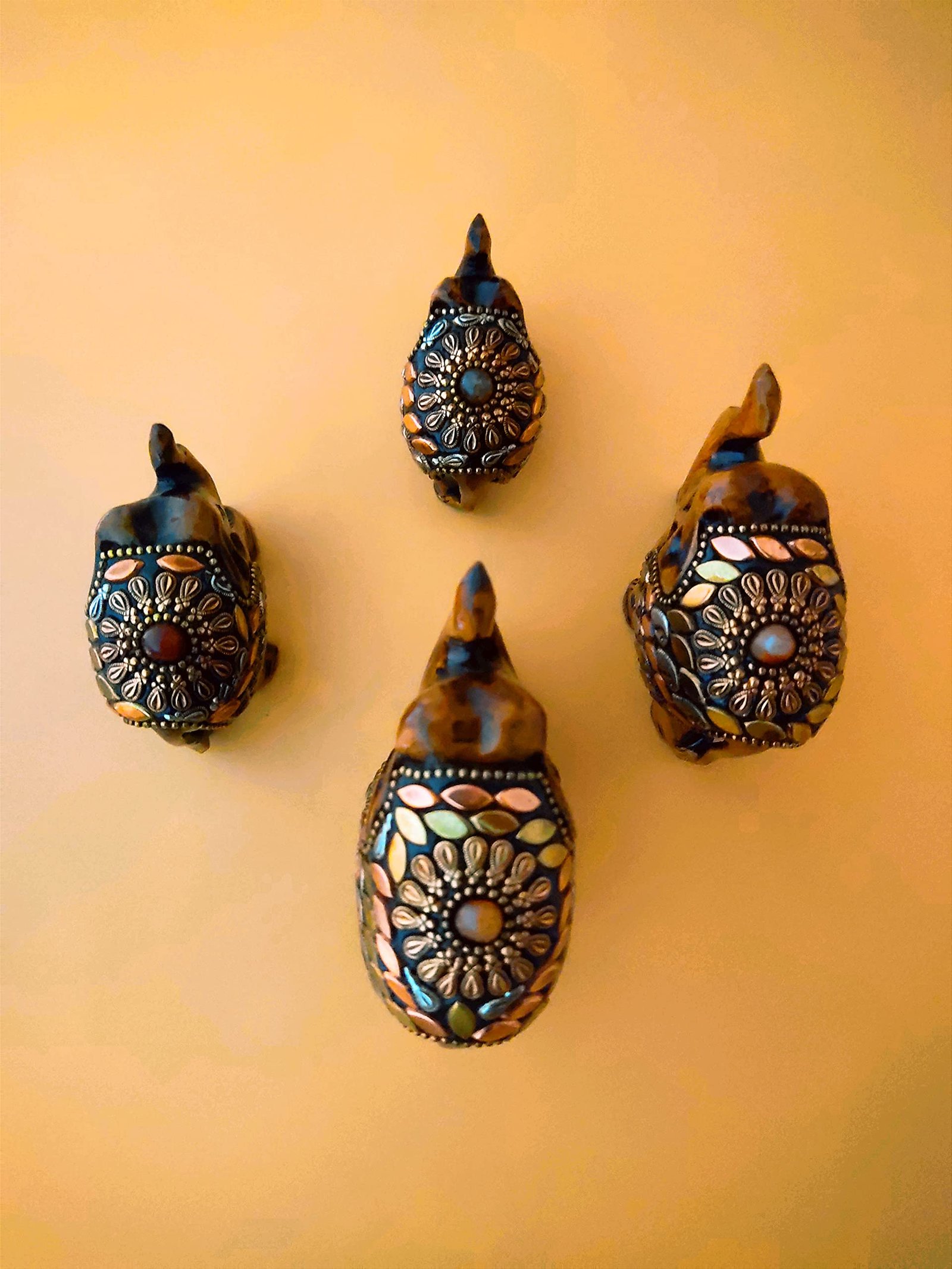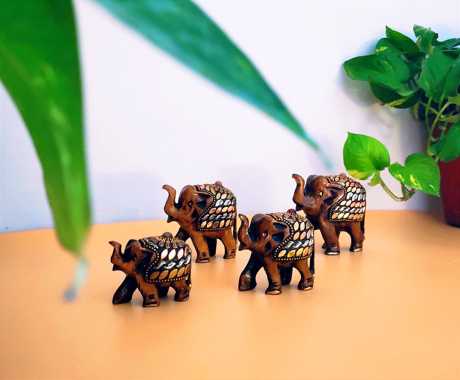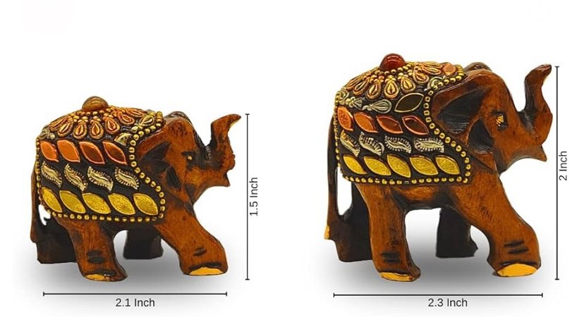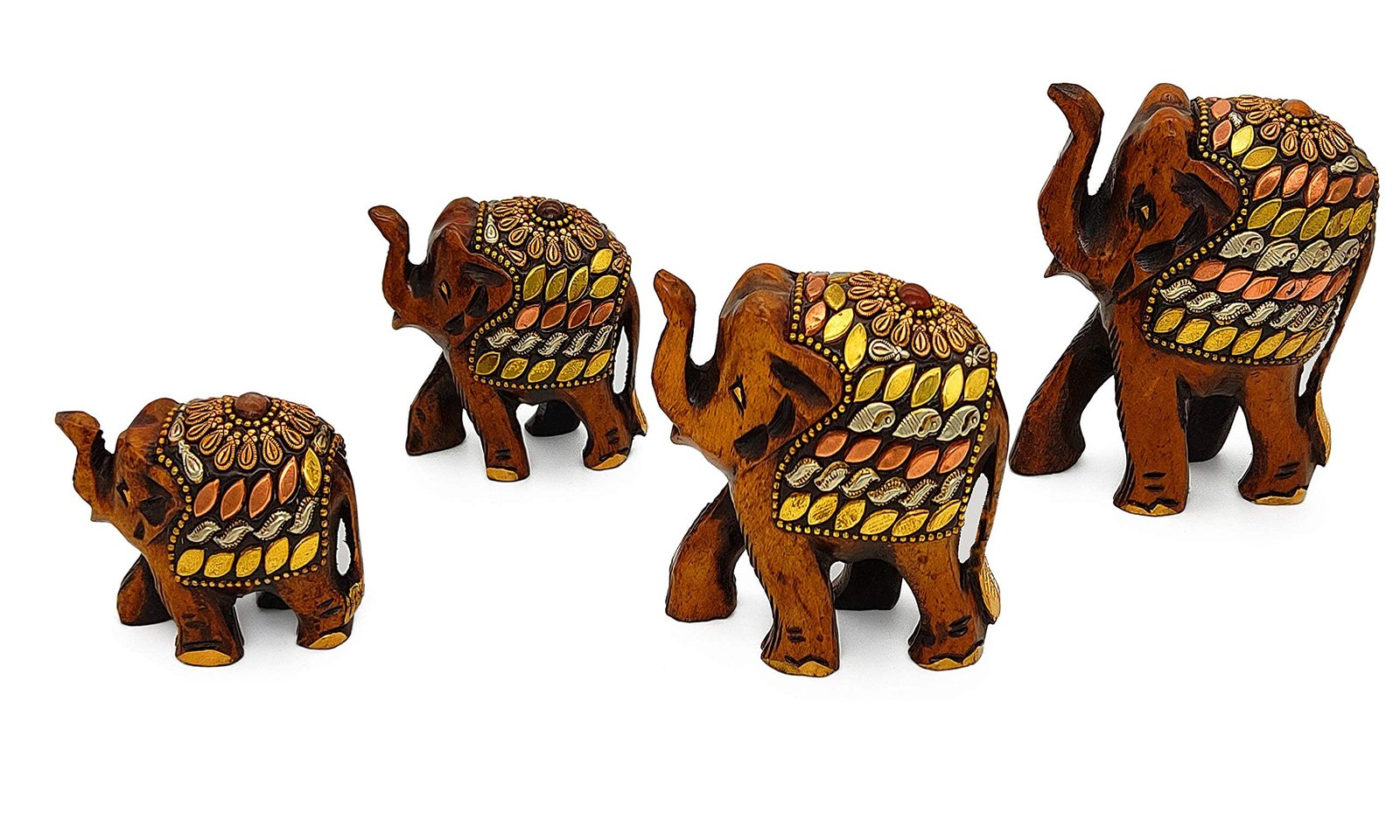 Wooden Elephant Family With Brass Copper Beads
