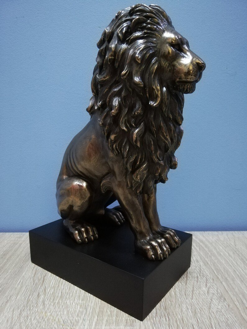PR Lion Sitting on Base Statue