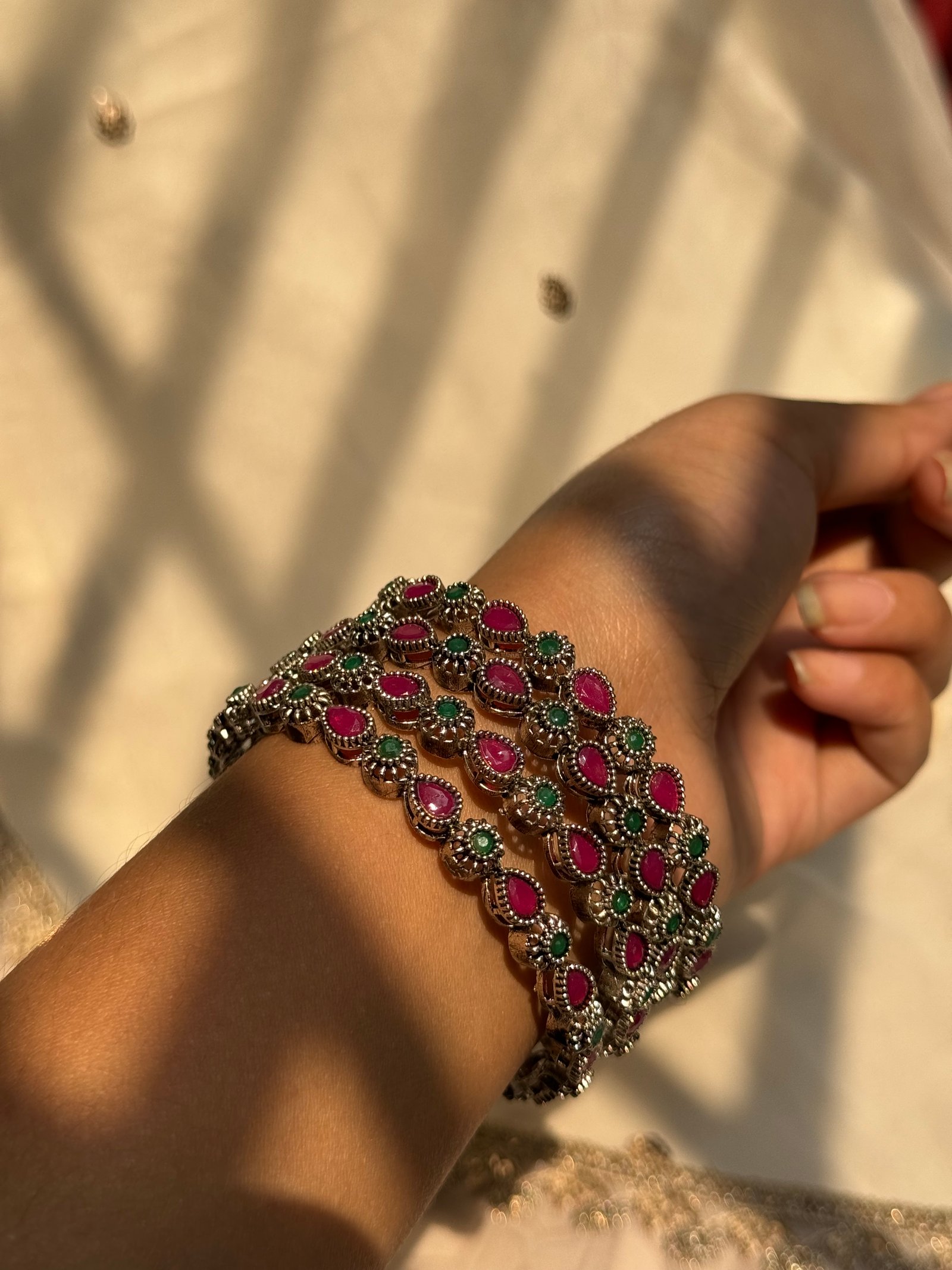 • Colour : stone red and green & body sliver